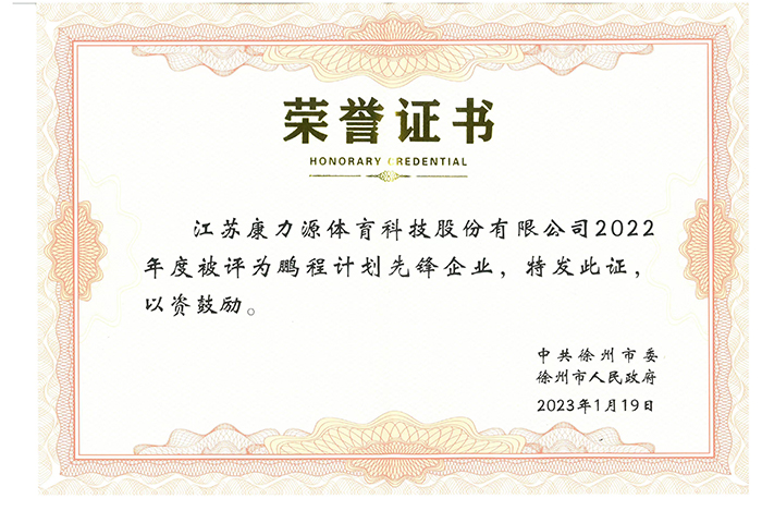 鹏程计划先锋企业荣誉证书