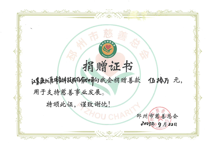 邳州市慈善总会捐赠证书